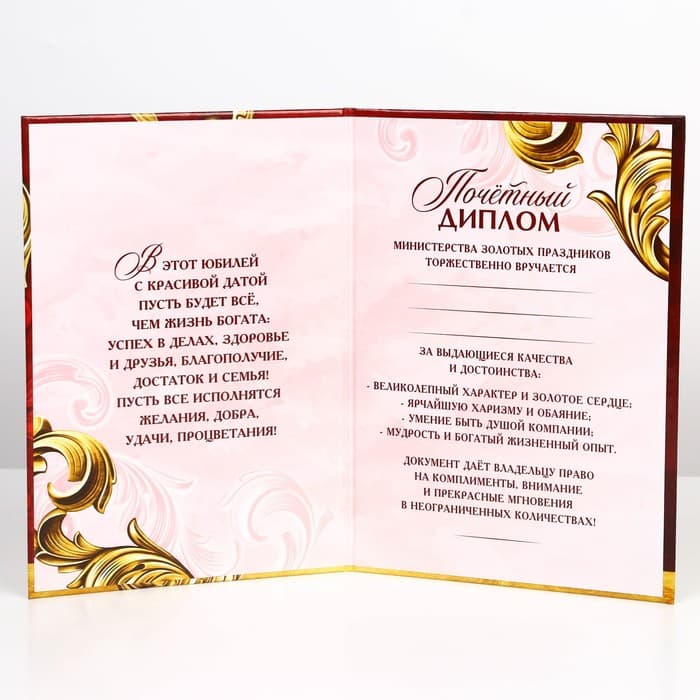 Диплом «С юбилеем 60 лет» 21 х 15 см. - отличный вариант для оригинального поздравления. Красочные изображения, тёплые слова, поле для имени получателя и список причин для вручения делают его незаменимым аксессуаром праздника! На любом торжестве есть место как серьёзным и официальным поздравлениям, так и весёлым шуткам! Традиционный формат, интересная обложка и позитивное содержание этого диплома украсят ваше мероприятие и позволят посмеяться от души.