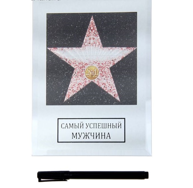 Каждый человек тайно мечтает быть звездой и оставить свой памятный след на голливудской «Аллее славы». Так почему бы не подарить близким такую возможность! Уникальный диплом — оригинальный сувенир, который точно понравится получателю. В комплект входит маркер, которым вы можете вписать имя адресата и сделать подарок индивидуальным!