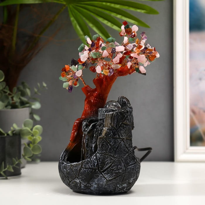 Вода успокаивает и уносит прочь отрицательные мысли. Умиротворяющее журчание поможет обрести внутреннюю гармонию. Фонтан является отличным увлажнителем воздуха, что благоприятно сказывается на самочувствии. Полезный предмет интерьера преобразит окружающее пространство и позаботится о вашем здоровье. Работает от сети ( 220в ).