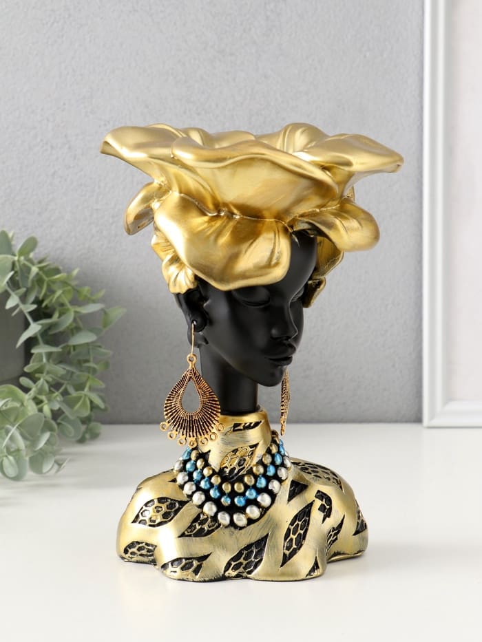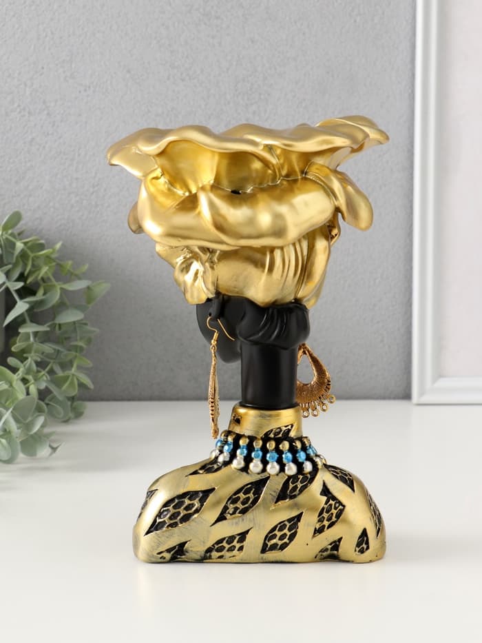 Интерьерная подставка для мелочей «Африканка со цветком на голове» — больше, чем просто украшение. Она создаёт настроение и порядок, превращая мелкие вещицы в часть интерьерной композиции. Статуэтка в виде женщины с изящной осанкой и золотым цветком на голове привносит в пространство ноту африканской эстетики, спокойствия и гармонии.