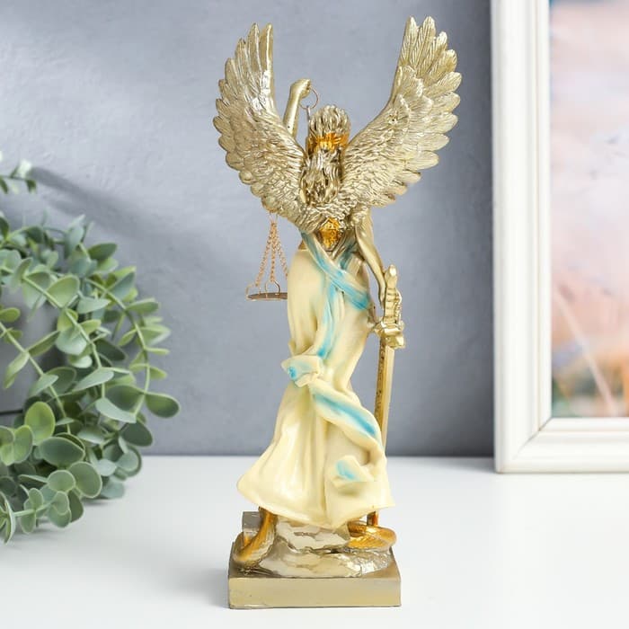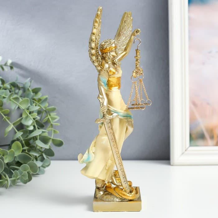 Интерьерная статуэтка «Фемида с золотыми крыльями» 25 см выполнена из полистоуна, материала, напоминающего по свойствам камень. Богатый золотой цвет Фемиды в сочетании с зеленым цветом платья производят яркое впечатление! Это прекрасный подарок для людей, связанных с юриспруденцией или руководящей должности!