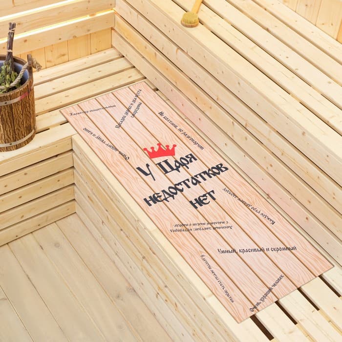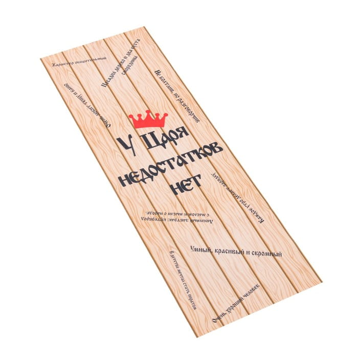 Коврик лежак банный «У царя недостатков нет!» — королевский комфорт для вашей парной. Просторный размер 150×50 см создан для истинных ценителей банного отдыха. Изготовлен из 100% полиэфира — прочного, износостойкого материала. Классический бежевый цвет с гордым принтом подчеркнет ваш безупречный вкус.