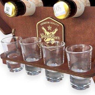 В наборе: бокал для пива 300 мл. - 4 штуки и рюмки 40 мл. - 4 штуки.