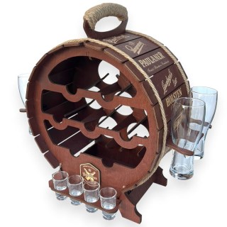 Мини-бар бочка для пива «Premium» с набором бокалов и рюмок.