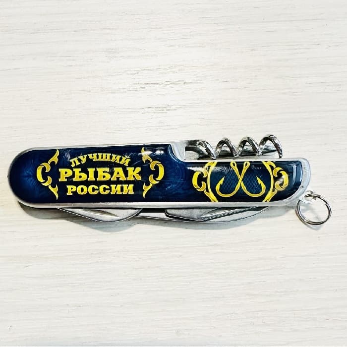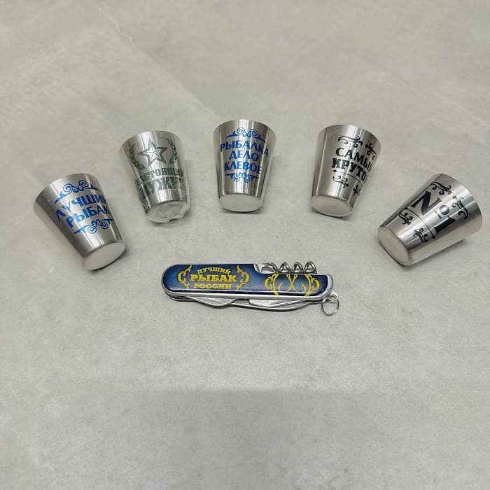 Набор «Лучший рыбак»: нож-мультитул, 5 стопок - это веселый и практичный подарок для тех, кто любит отдохнуть на природе. Пять стопок по 30 мл., выполненные из нержавеющей стали с ярким принтом порадуют своего обладателя. А такие вещи, как нож, открывалка, отвертка и штопор понадобятся для застолья на свежем воздухе!
