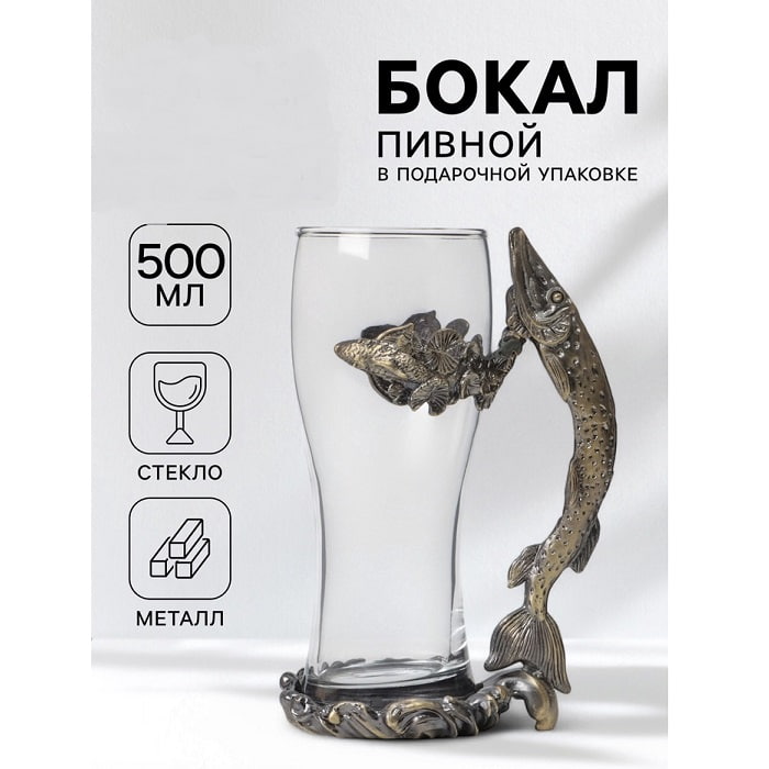 Оригинальный бокал для пива «Щука» с металлической ручкой 500 мл – идеальный подарок для любителей пенного напитка. Ручка в форме щуки добавляет оригинальности и делает использование бокала максимально комфортным. Стеклянный бокал с удобной ручкой, станет настоящим украшением вашего стола. Изготовленный из качественного стекла, бокал обеспечивает идеальную прозрачность и чистоту напитка. Благодаря такой форме бокал позволяет пиву дольше сохранять свою температуру и раскрывает все нюансы аромата и вкуса напитка.