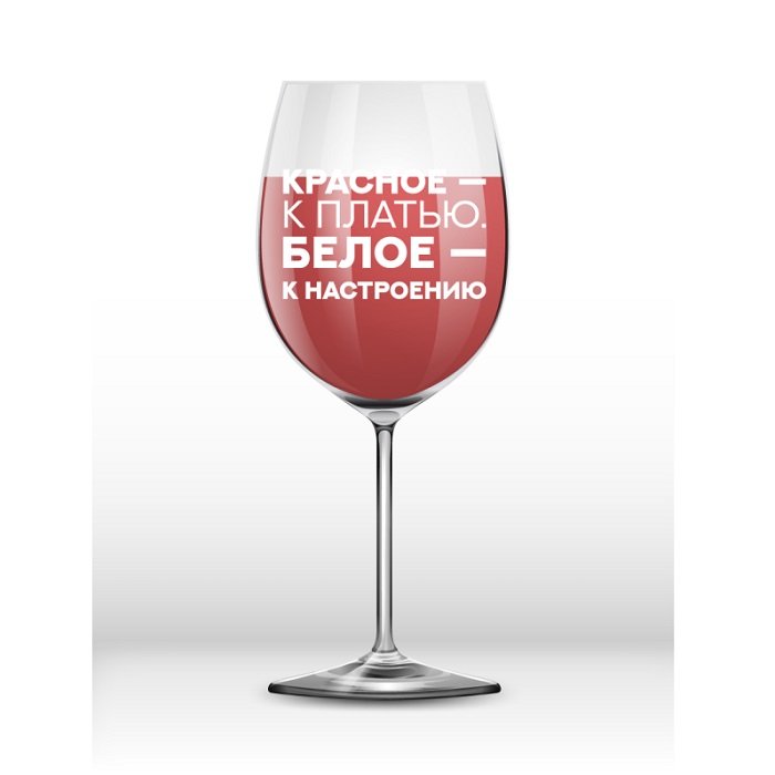 Оригинальный бокал для вина «Красное к платью» 400 мл - отличный подарок для любителей вина. Яркая и веселая надпись будет радовать свою владелицу и поднимать настроение окружающим. Изготовленный из высококачественного стекла бокал имеет вместительность 400 мл, что позволяет полностью насладиться вкусом вина. Бокалы изготовлены из высококачественного стекла, а надписи выполнены методом деколи, что гарантирует их долговечность и сохранение яркости рисунка. Рекомендуется не использовать посудомоечную машину для мытья бокалов, чтобы сохранить яркость и четкость надписей.