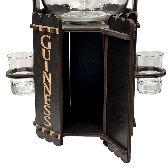 Диспенсер с краном 3 литра, 2 пивных футбольных кружки 500 мл, 2 рюмки по 40 мл, отсек для аксессуаров и вкусняшек.