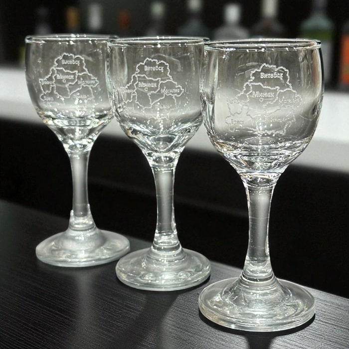 -Рюмка на ножке с гравировкой карта Республики Беларусь - 3 штуки по 55 мл.,