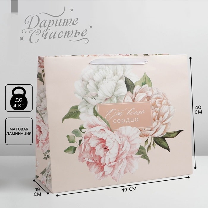 Купить Подарочный пакет «От чистого сердца» 49× 40× 19 см в Минске можно, оформив заказ через корзину сайта или позвонив по телефонам, указанным на сайте. Также заказать пакет подарочный можно с доставкой в любую точку Беларуси (Брест, Гродно, Гомель, Витебск, Могилев, Бобруйск, Барановичи, Новополоцк, Пинск, Борисов, Мозырь и т.д.).