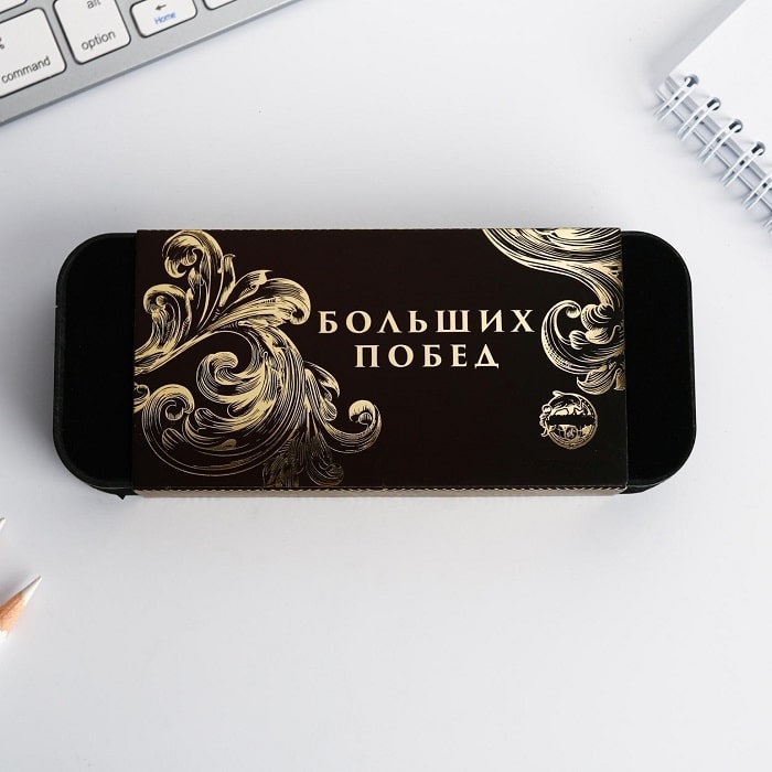 Ручка в подарочной коробке «Больших побед» станет незаменимым помощником в делах. Ручка упакована в пластиковый футляр, обтянутый бархатом, с картонной накладкой, поэтому Вам не придётся ломать голову над поисками упаковки.