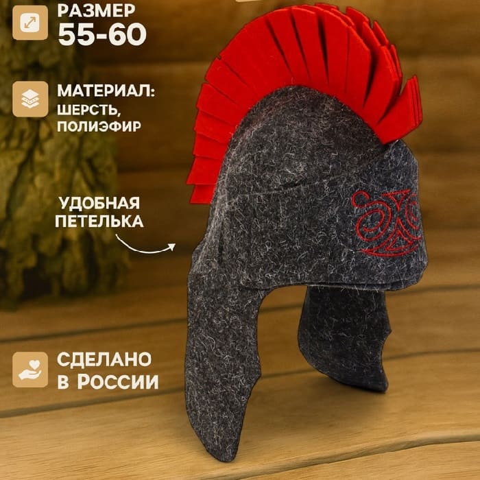 Шапка для парной «Гладиатор» - важный, полезный и яркий аксессуар, который придется по душе любителям парной и сауны. Надевайте шапочку перед парилкой, так вы поддержите стабильную температуру головы, и это даст возможность находиться в бане дольше и с удовольствием. Выбирайте изделия из войлока или фетра: они практически не нагреваются и имеют долгий срок службы.