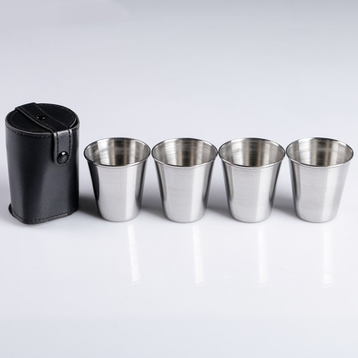 Небольшие стаканчики из нержавеющий стали - это практичный и долговечный, но, в то же самое время, оригинальный подарок. Такие рюмки незаменимы в путешествии, в походе и на природе. Три рюмки не займут много места, будут защищены от царапин и прочих дефектов, т. к. хранятся в чехле.
