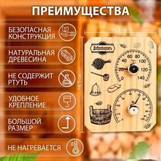 Тем, кто не представляет полноценный отдых без парной, не обойтись без специальных банных принадлежностей. Чтобы создать максимально комфортные условия для пребывания в бане, необходимо знать температуру воздуха. Представляем вашему вниманию в авторской деревянной оправе, который идеально впишется в интерьер традиционной русской бани!