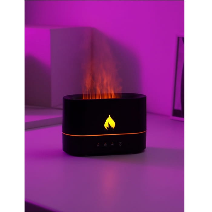 Увлажнитель воздуха с эффектом пламени «Камин»: ультразвуковой,цвет черный - компактный увлажнитель создаёт в помещении атмосферу мягкого тепла и спокойствия.Ультразвуковое распыление, эффект «живого пламени» и подсветка работают вместе, чтобы сделать воздух комфортнее, а пространство — уютнее. Питание от USB позволяет разместить устройство где угодно: на тумбе, рабочем столе или в небольшой комнате.