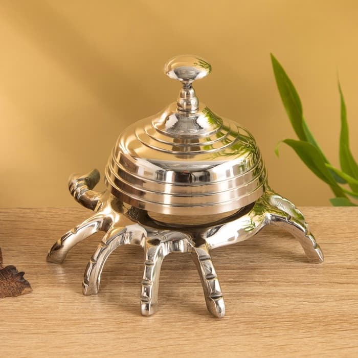Звонок настольный латунный «Краб» 11 см. - это отличный способ привлечь внимание. Ставьте его на свой рабочий стол и звоните до результата. Кому-то безумно понравится звонок, кто-то будет раздражаться от его звука, но никто не останется равнодушным!