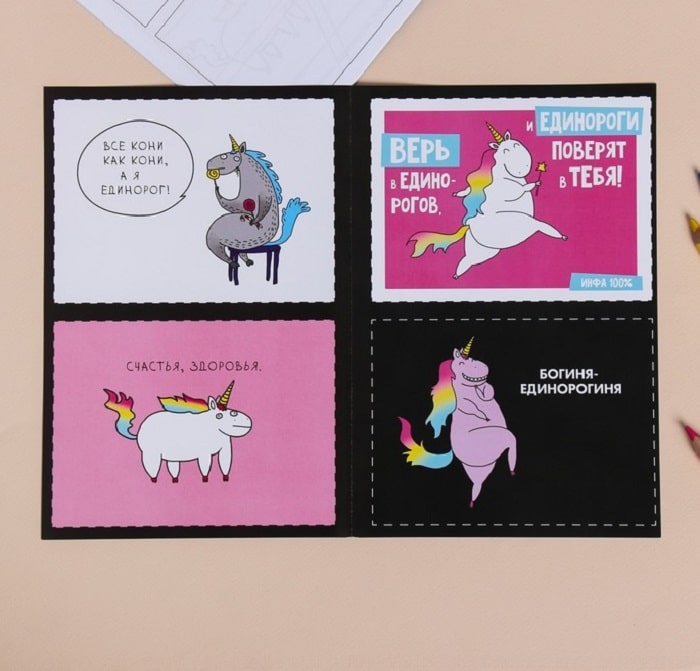 Блокнот для создания комиксов «ЛАМАй стереотипы»- это отличный сувенир для творческих людей, не терпящих обыденность и "обычность". Блокнот уже имеет готовые блоки для комиксов, 4 веселые открытки, а также 2 листа зарисовок, которые необходимо оформить в цвете и придумать смешной текст.