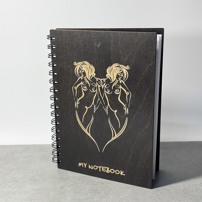 Блокнот знак зодиака «Близнецы» деревянная обложка очень удобный и комфортный для записей, зарисовок или планов, списков ежедневных дел.