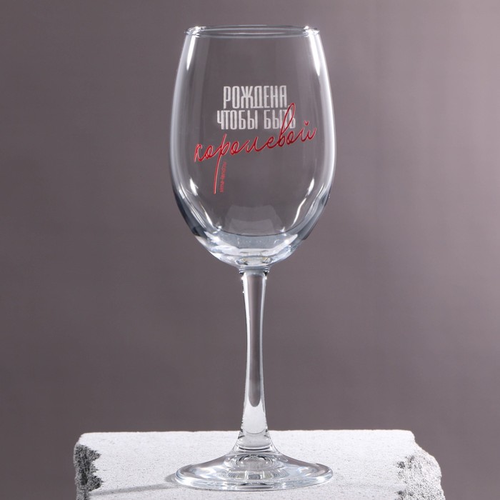 Бокал для вина «Рождена королевой 360 мл. - отличный подарок для любителей вина. Яркая и веселая надпись будет радовать свою владелицу и поднимать настроение окружающим.
