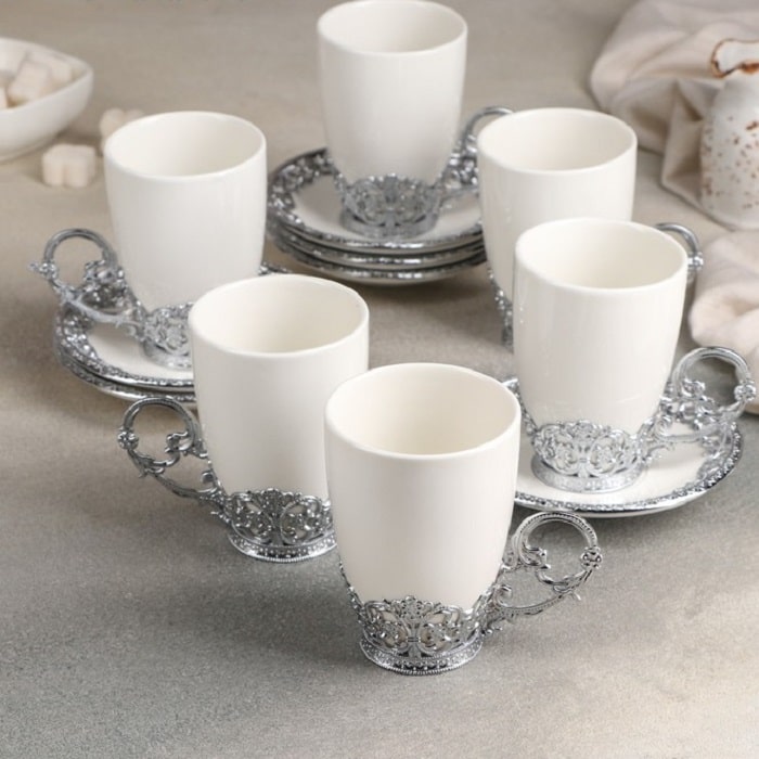 -6 чашек из фарфора с металлической отделкой объемом 100 мл.;