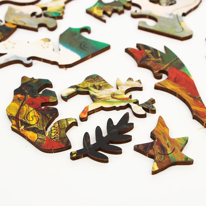 Яркие краски, необычная иллюстрация, экологичный материал. И это еще не всё- каждый элемент - это отдельная фигурка со своей историей! Собирайте удивительные пазлы всей семьей и погружайтесь в загадочный мир искусства!