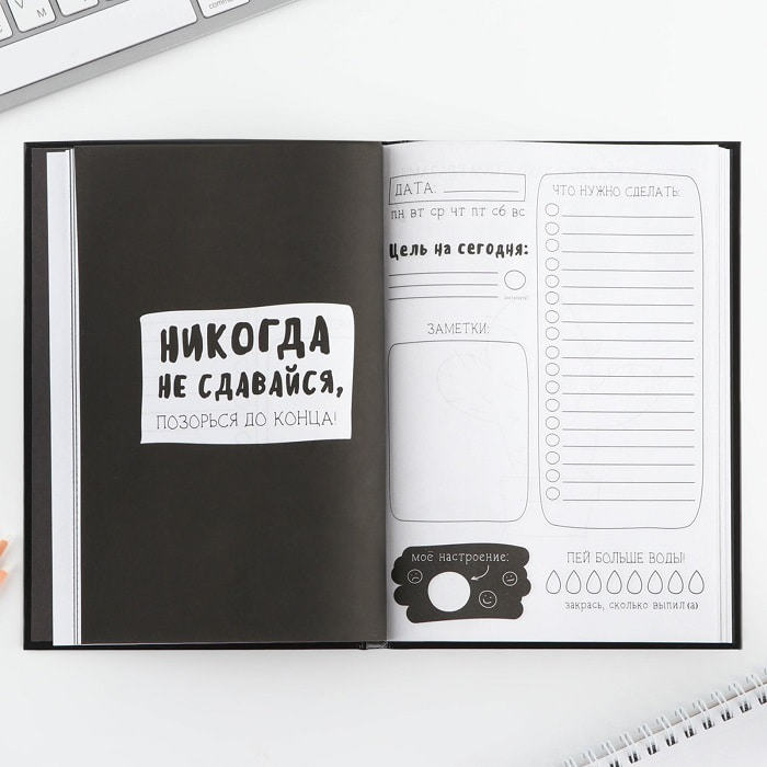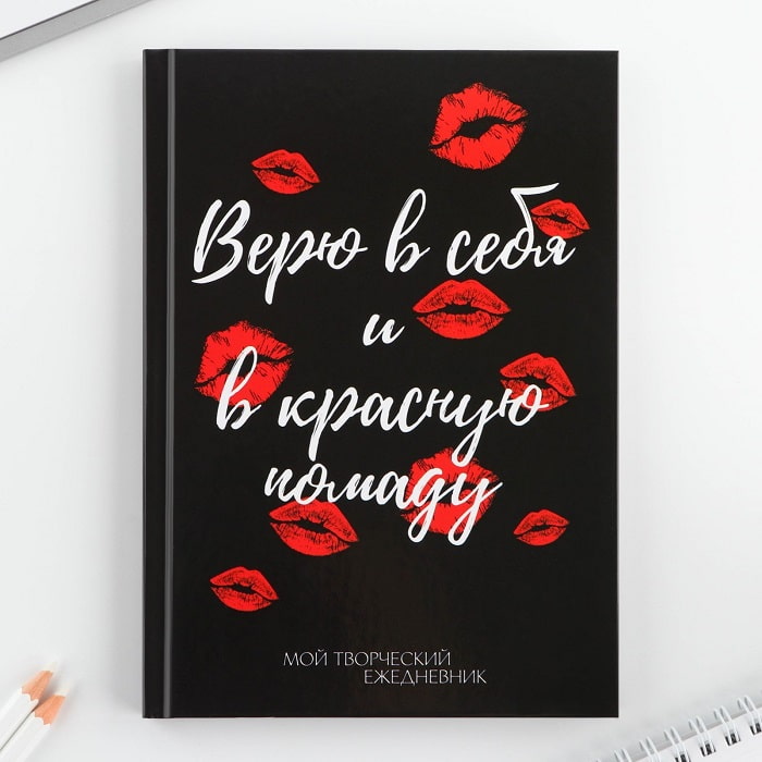 Ежедневник «Верю в себя и красную помаду» 120 листов А5 — это оригинальный, стильный, модный и полезный аксессуар. Он подчеркнёт индивидуальность и характер владельца. Благодаря недатированным листам ежедневник можно использовать с любого дня и месяца.