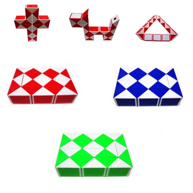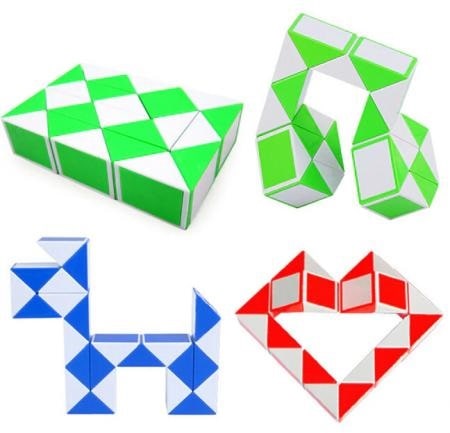 Головоломка «Змейка» 24 сегмента микс - еще одно популярное изобретение Рубика, покорившее сердца любителей и фанатов головоломок. Занимает почетное второе место по продажам, после Кубика Рубика. Эта модель состоит из 24 треугольников, которые вращаются, таким образом, что этот механизм позволяет собирать различные геометрические фигуры, или разных животных (лебедь, летучая мышь, собака, мячик и т.д.) – в общем, у кого на что фантазии хватит. Особенность Змейки Рубика в том, что здесь нет верных или неверных решений - просто получайте удовольствие от игры. Фантазируйте, изобретайте, творите! Почувствуйте себя настоящим скульптором! Змейка Рубика имеет подарочную шестигранную упаковку из прозрачного пластика. Рекомендованный возраст от 8 лет. Головоломка способствует развитию Змейка Рубика - развивающая игрушка, тренирует пространственное воображение и умение видеть образы и формы.