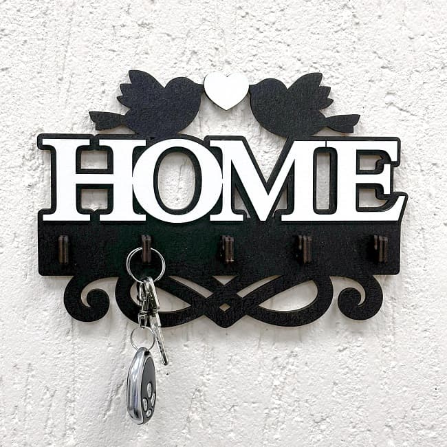 Ключница с птицами «HOME» 5 крючков, вид №1 - это оригинальное решение для прихожей комнаты. Ключница наполнит входную зону уютом.