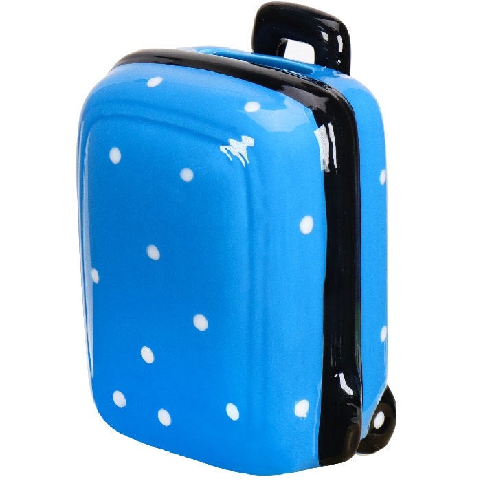 Копилка для монет «Чемодан в горошек» цвет:синий оптимальна по размеру для накопления на небольшие, но приятные «хотелки». Когда она наполнится до краёв, копилку можно открыть, высыпав содержимое, а затем снова использовать!