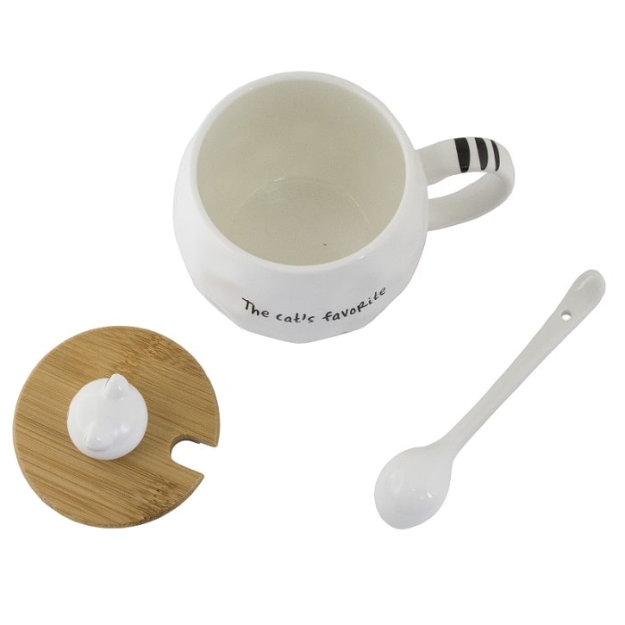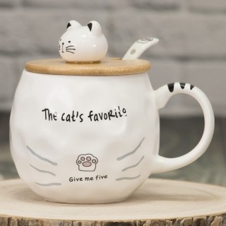Кружка котэ «The cat's favorite» с ложкой и крышкой отличает яркий, насыщенный рисунок. Изображение на кружке расположено так, чтобы им могли любоваться не только вы, но и ваши сотрапезники. Керамическая крышка с отверстием под ложку не даст напитку остыть раньше времени.
