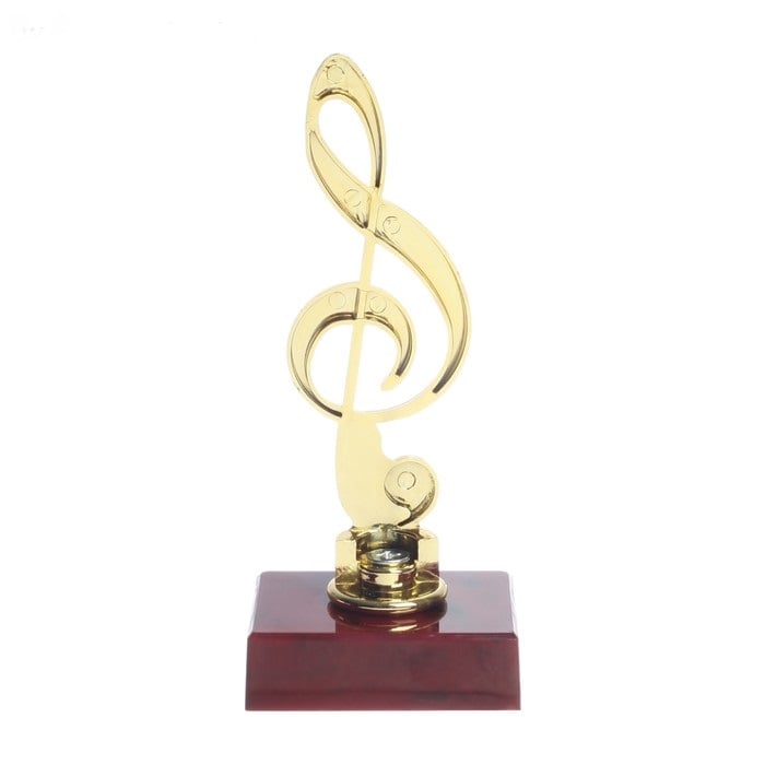 Награда выполнена в виде скрипичного ключа, расположенного на подставке из пластика.