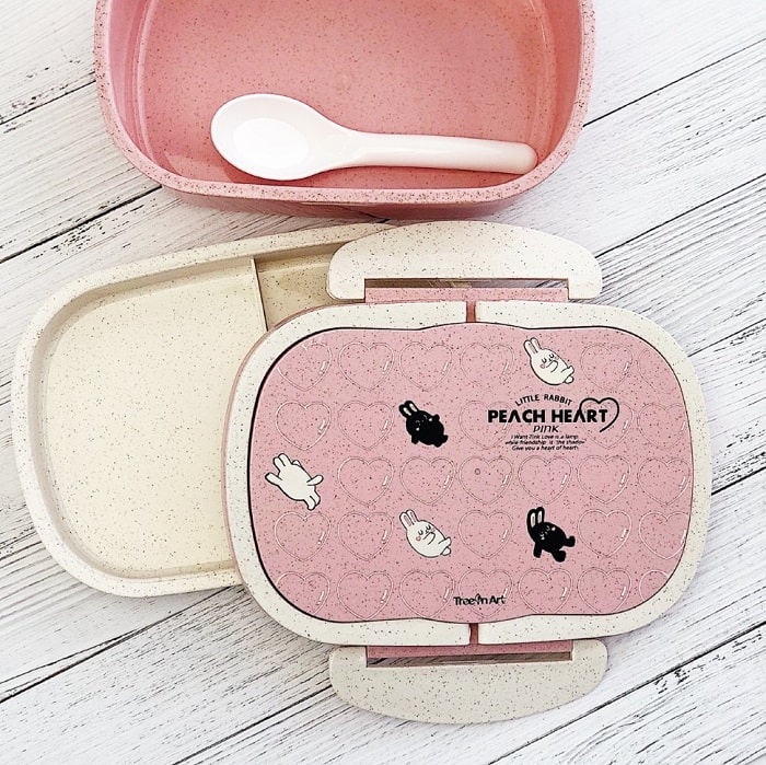Ланч-бокс выполнен из пищевого пластика, в комплект входит ложка.