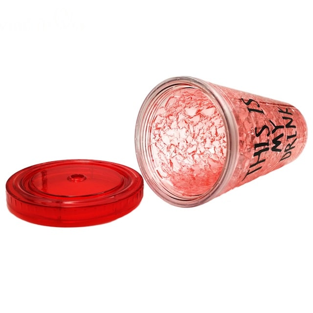 Прекраснейшее изобретение для охлаждения напитков! Все дело в двойных стенках, между которыми находится специальный гель. Предварительно стакан надо положить в морозильник на 2-3 часа. Гель замерзнет и будет сохранять холод в течении 1,5 часов.