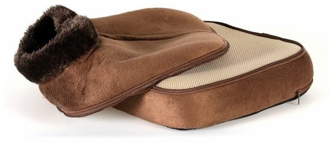 верх полностью отстегивается: можно использовать как тапок-грелку для ног, а можно как массажную подушку или грелку для любой части тела;