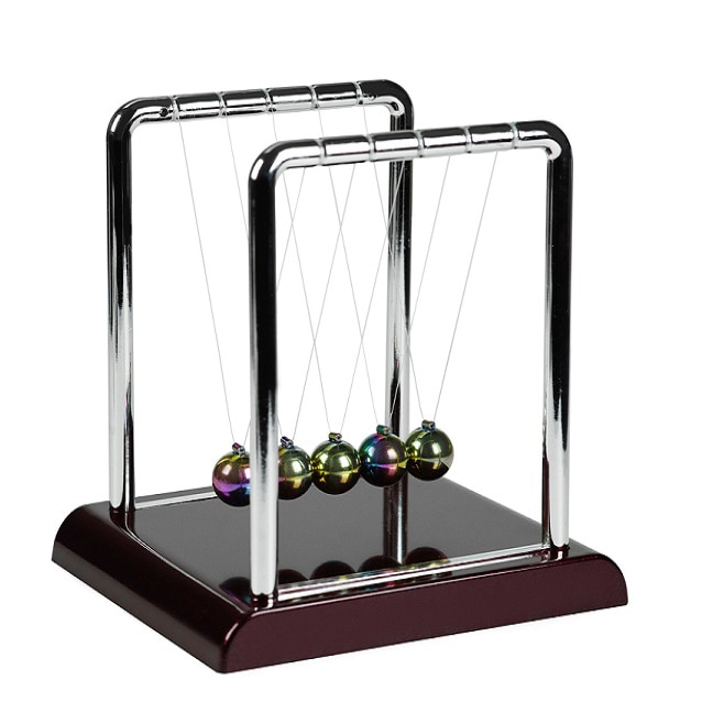 Один из таких настольных антистрессов из ряда сувенирных «вечных двигателей» называют «Шары Ньютона». Эта игрушка, конечно, не зарядит ваш мобильный телефон или ноутбук, зато у нее занимательная конструкция, а еще ею просто приятно любоваться.