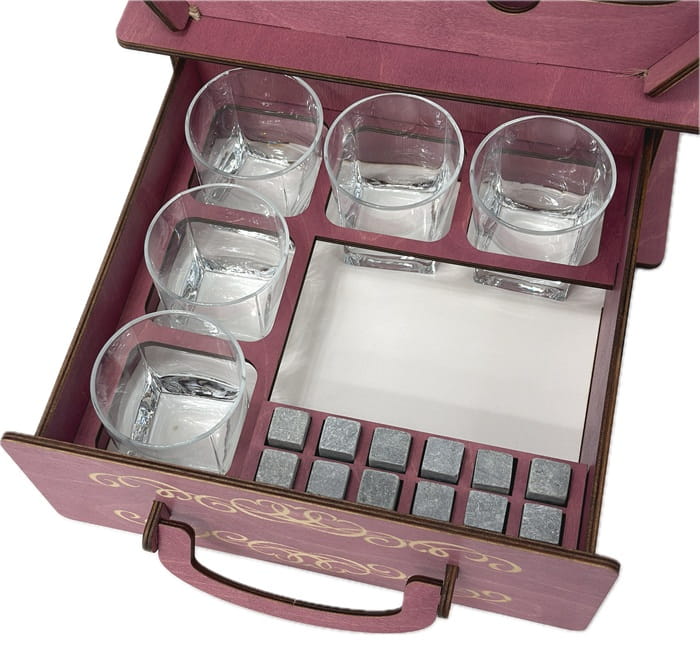 Мини-бар бочка Whisky розовая «Glamorous» с набором аксессуаров для виски идеальный подарок для женщин.