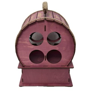 Подставка для бутылок изготовлена в виде деревянной бочки.