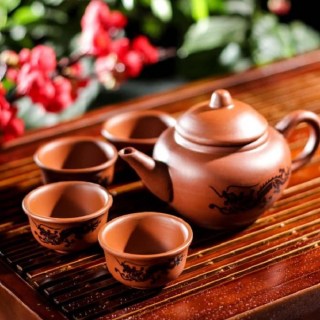 Великолепная красная глина надолго сохранит вкус и температуру чая. Особая форма чайника позволит раскрыть всю полноту вкуса и аромата традиционного китайского напитка. Изделия производятся из исключительно качественных материалов и гарантируют длительный срок службы. Утончённо декорированный комплект погрузит вас в атмосферу пленительного востока и позволит провести настоящую восточную церемонию по всем правилам. Поразите друзей и родных, устройте сюрприз своей второй половинке. С нашим набором у вас всё получится!