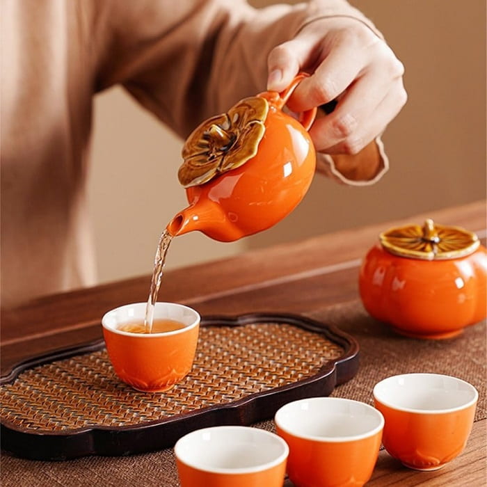 Мы представляем вашему вниманию роскошную коллекцию предметов для чайной церемонии «Тыква». Предлагаемый гарнитур состоит из 3-х керамических пиал по 50 мл, изящного чайничка 150 мл, чайной чаши 200 мл.