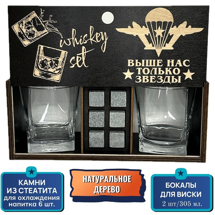 Набор для виски ВДВ «Выше нас только звёзды» камни, бокалы.