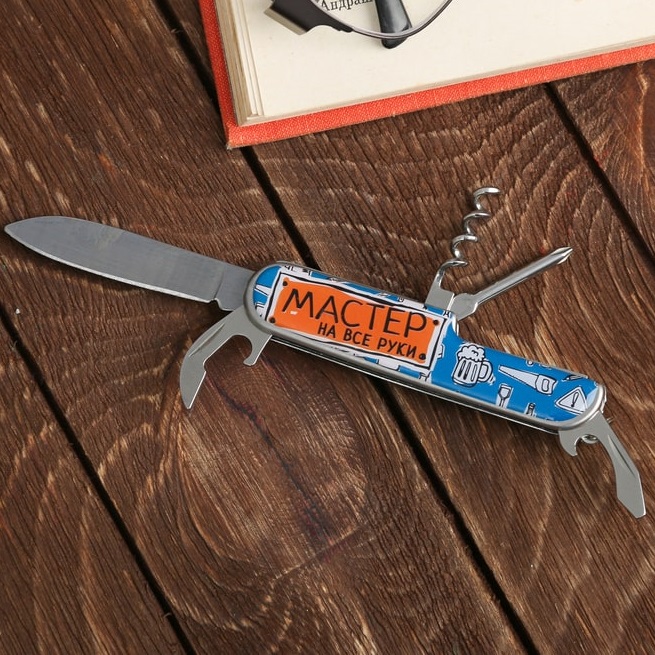 Набор «Мастер»: нож-мультитул, зажигалка- это веселый и практичный подарок. Такие вещи, как нож, открывалки, отвертка и штопор понадобятся для застолья на свежем воздухе!