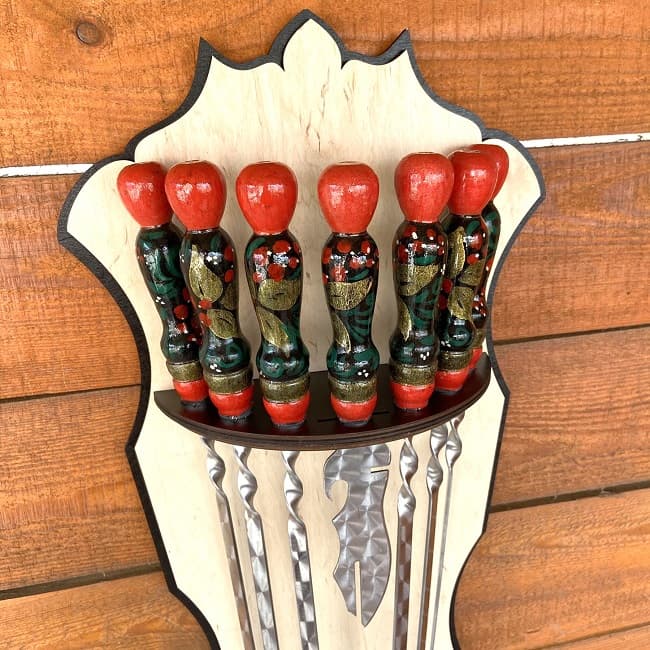 Купить Набор шампуров на подставке «ХОХЛОМА» + нож для снятия мяса в Минске можно, оформив заказ через корзину сайта интернет- магазина или позвонив по телефонам указанным на сайте. Так же заказать шампура на подставке можно с доставкой в любую точку Беларуси (Брест, Гродно, Гомель, Витебск, Могилев, Бобруйск, Барановичи, Новополоцк, Пинск, Борисов, Мозырь и т.д.)