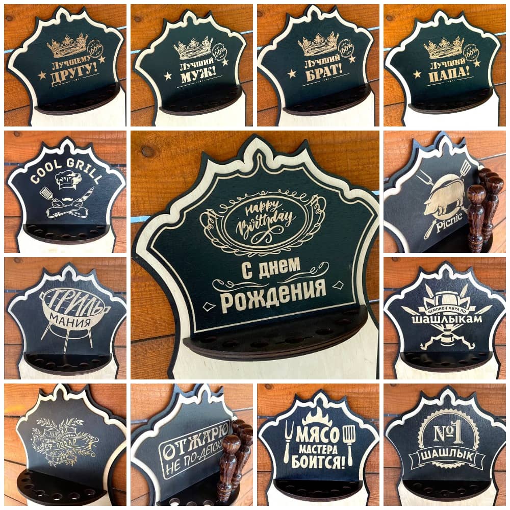 Деревянная подставка для хранения шампуров с креплением на стену- прекрасный вариант для хранения шампуров, стильно будут смотреться на любой стене в доме и больше ненужно думать куда убрать шампура. Отличный подарок для мужчины.