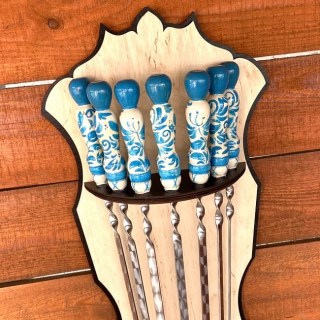 Купить Набор шампуров с деревянной ручкой на подставке «Гжель» 7 штук в Минске можно, оформив заказ через корзину сайта интернет- магазина или позвонив по телефонам указанным на сайте. Так же заказать шампура на подставке можно с доставкой в любую точку Беларуси (Брест, Гродно, Гомель, Витебск, Могилев, Бобруйск, Барановичи, Новополоцк, Пинск, Борисов, Мозырь и т.д.)