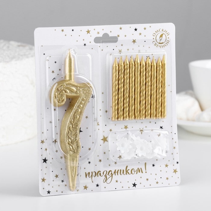 Высота каждой свечки: 12,5 см (Цифра 7), 6 см.