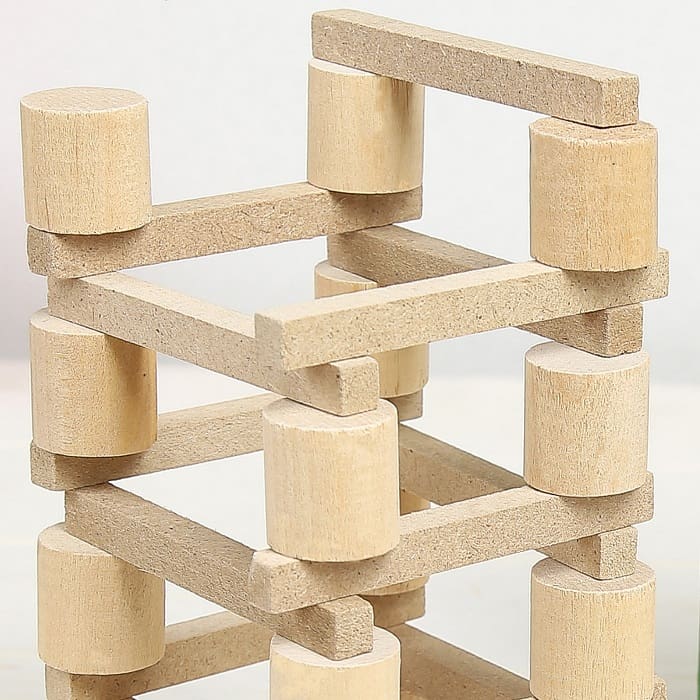 В набор входят 20 брусков, 16 бочонков, 1 кубик.