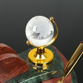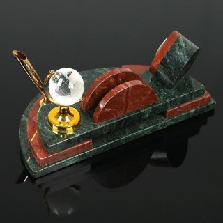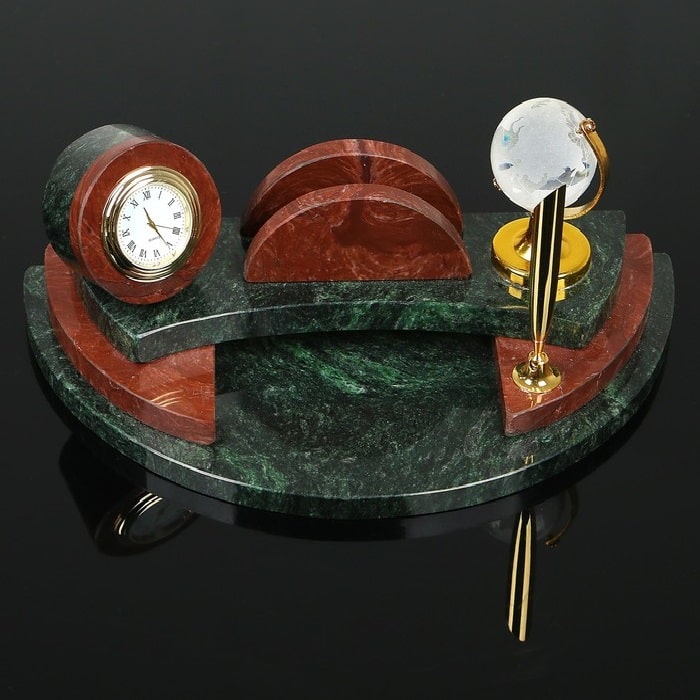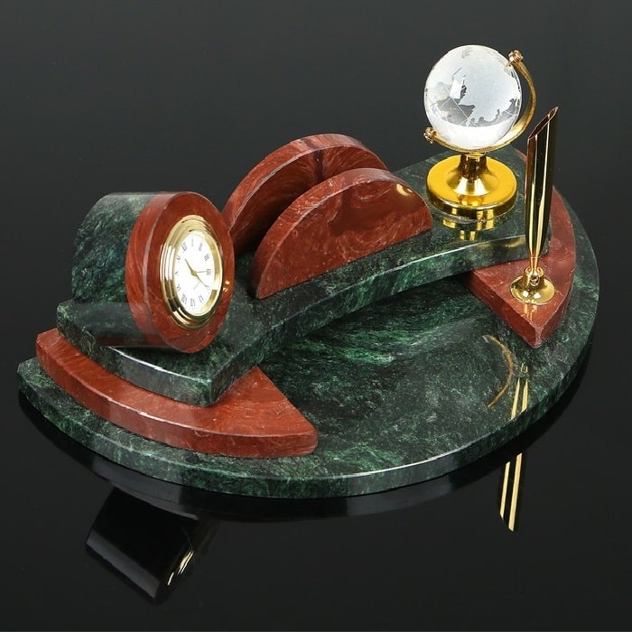 Выполненный из змеевика настольный набор станет отличным дополнением интерьера и украшением рабочего кабинета.