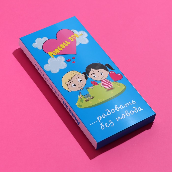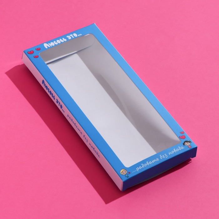 Яркая подарочная коробка «Любовь - это...» из картона - это отличный вариант красивого оформления шоколада. Сувенир в такой упаковке, безусловно, порадует своего будущего обладателя.