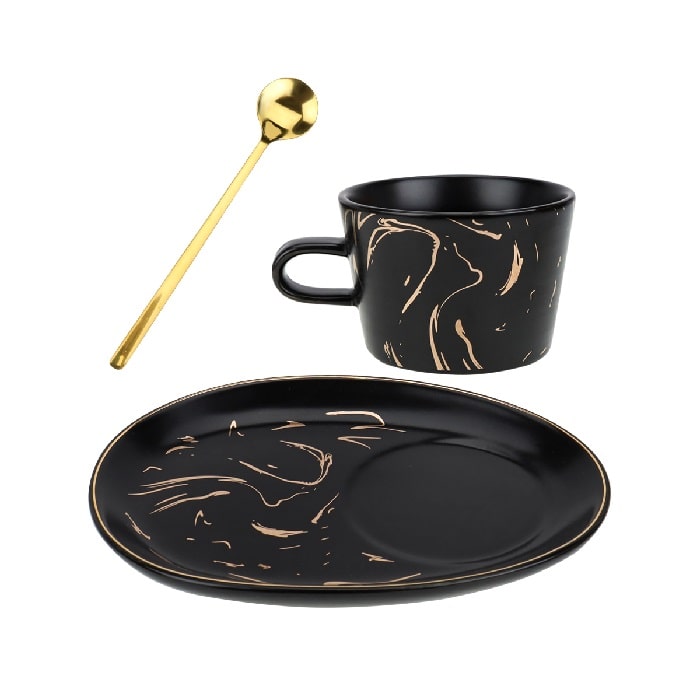 Подарочный чайный набор «Мраморные блики» цвет: черный на 1 персону: кружка, блюдце, ложка - это отличный подарок, который украсит любой интерьер, гармонично будет смотреться как на кухонном столе, так и в гостиной комнате. Такой подарок можно преподнести коллеге, подруге, маме, сестре! По-настоящему стильный дизайн будет поднимать настроение при каждом чаепитии!