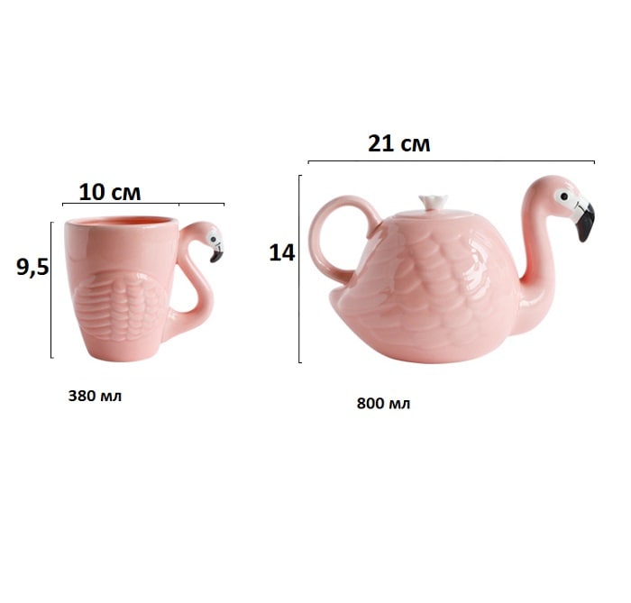 Чайный набор включает в себя 2 керамические кружки объемом 380мл и чайником объемом 800 мл.